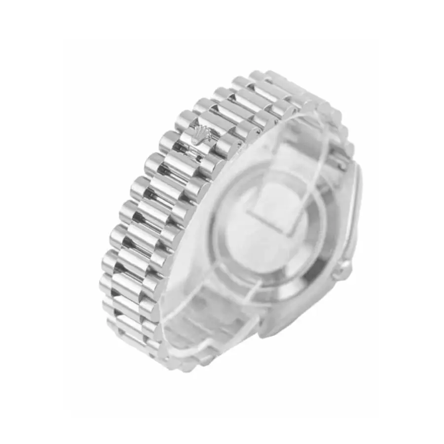 The Rolex Day-Date 228236 Silver Grey Dial Replica is a luxurious watch that is sure to impress. It features a 904L stainless steel case and bezel, with a white gold color. The sapphire crystal is 40.00 mm in size and 12.00 mm in thickness. The bracelet is also made of 904L stainless steel, with an adjustable link and a double-fold clasp. The black dial features stick and dot indices, with 904L stainless steel hour markers and hands.